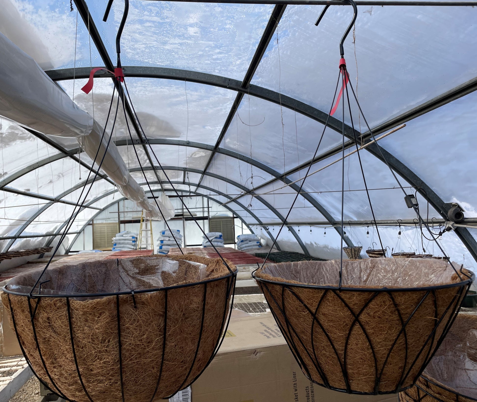 We will have a variety of blooming annuals planted in these large, black metal hanging baskets with coco mat. Only 25 of these baskets available!! More photos to come as the plants grow and fill out the basket.