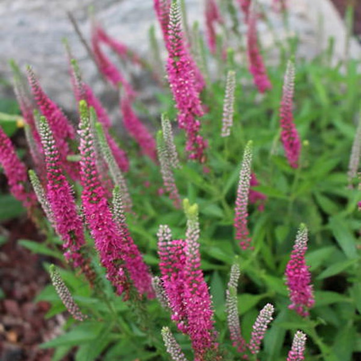 Red Fox Veronica displays bright, fushsia-pink spikes that attract pollinators. They work great for small spaces or borders.