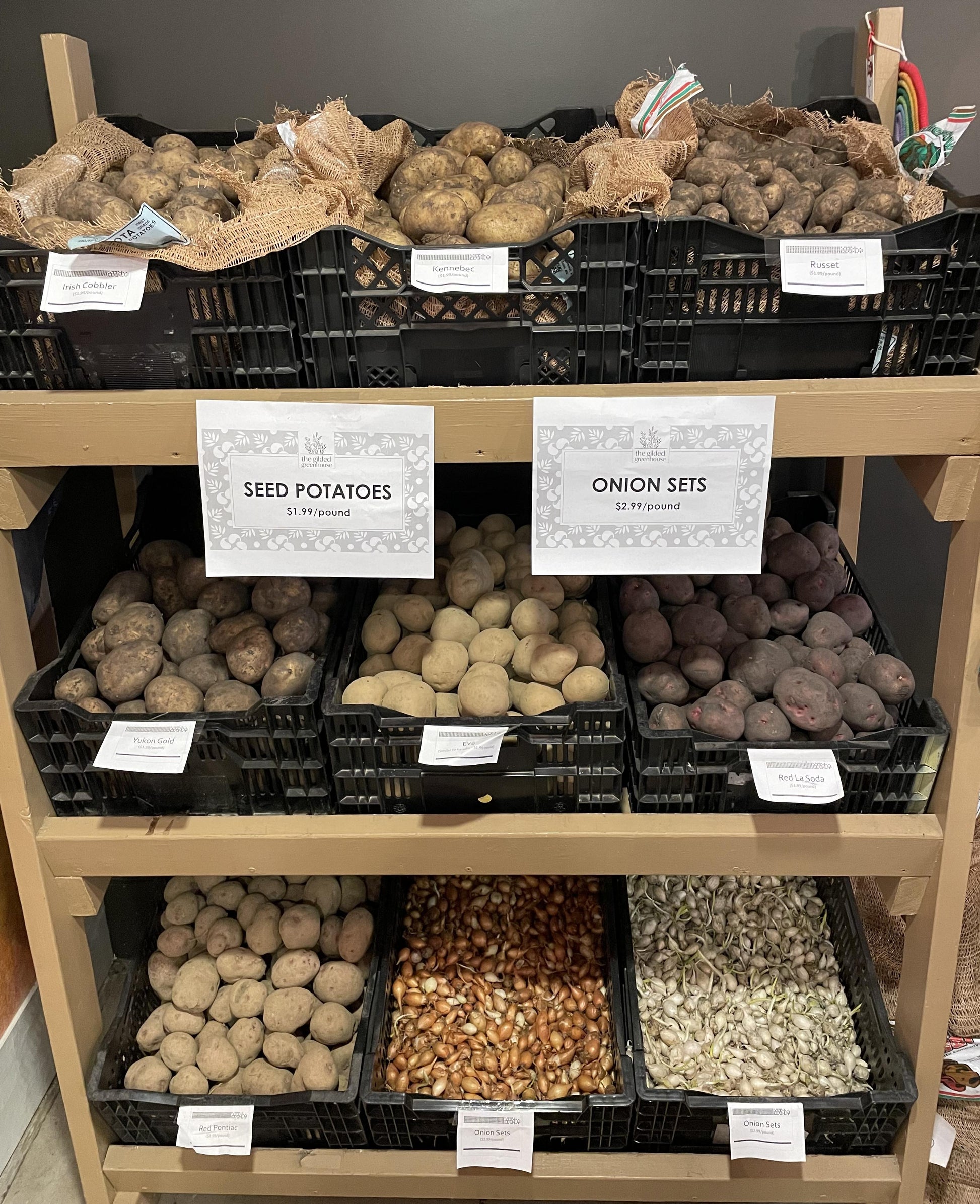 $2.99 per pound. This is a small onion bulb grown from seed the year before. Brought in the fall and stored over winter. Push onion bulbs into soil about 1" deep and hill the soil as they grow. Yellow are best for storage, great for early green onions and cooking.